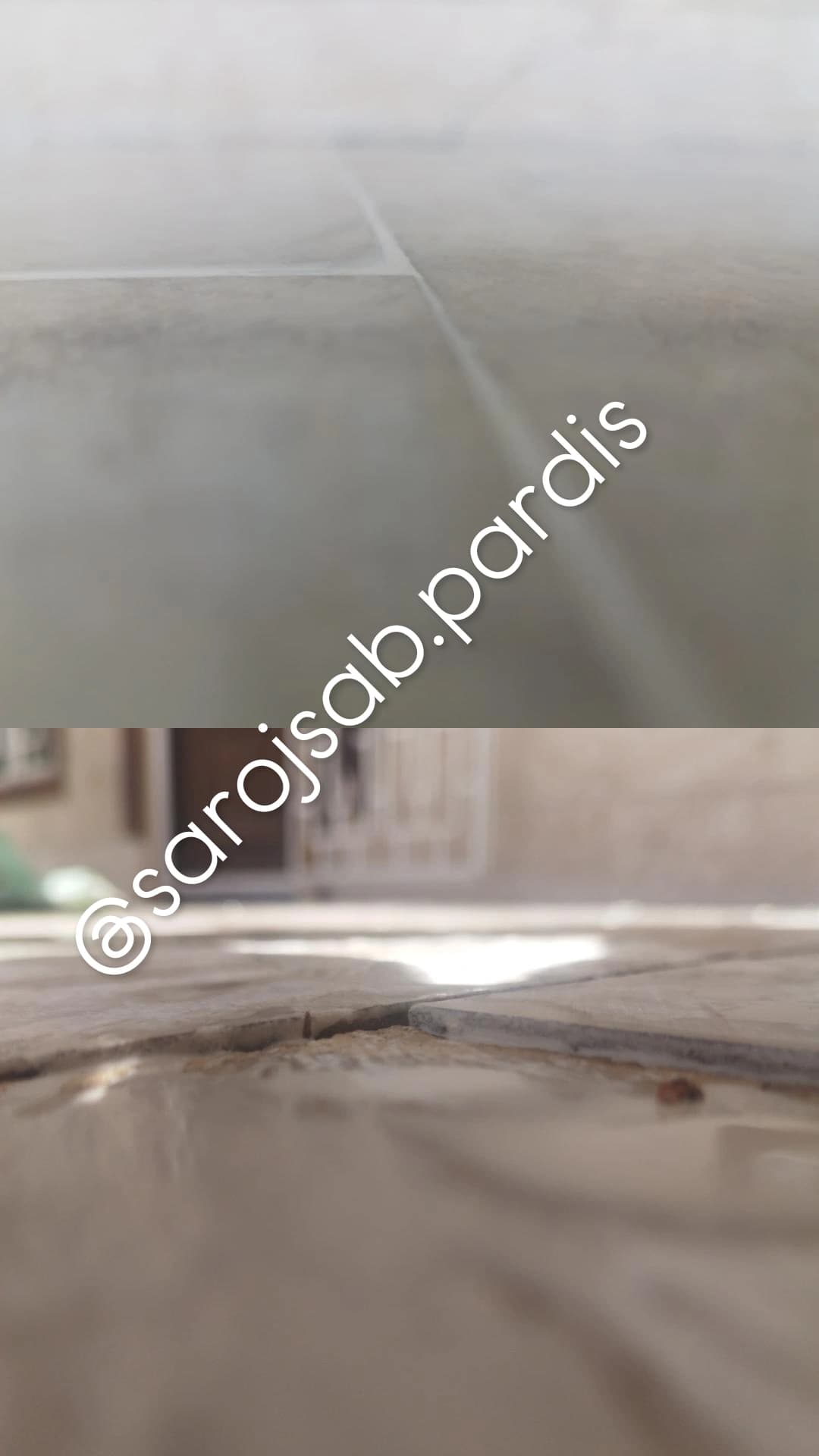 تفاوت کفسابی کردن . قبل و بعد از کف سابی سنگ و بتونه کاری دقیق و درست در یک قاب . در منطقه مهراباد رودهن