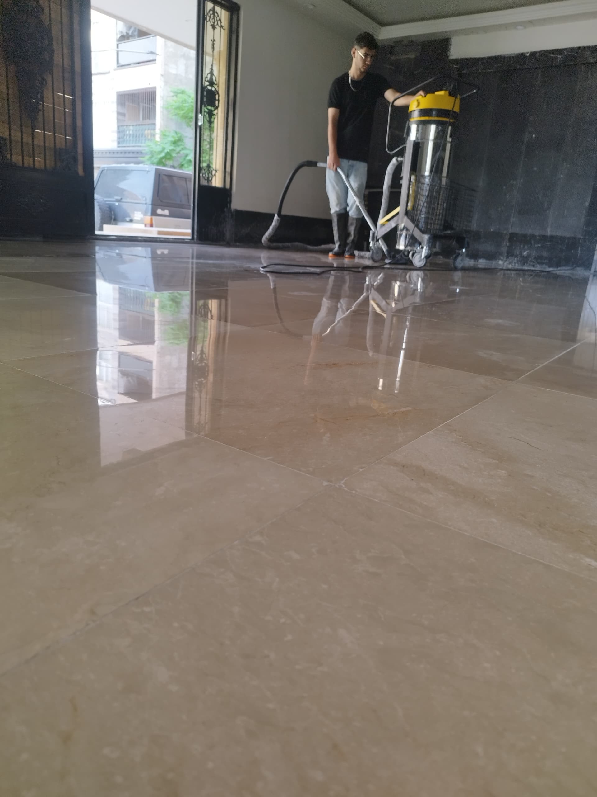 کفسابی راه رو جلو اسانسوری و براق کردن سنگ کف برای همیشه و نظافت اسان در پردیس فاز 8