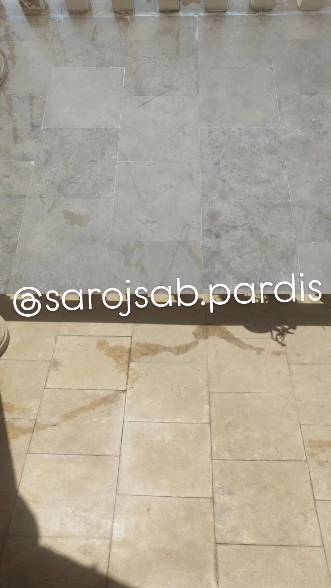 تصویری زیبا از کفسابی عالی روی سنگ پارکینگی که قرار بود بخاطر کثیفی و مصالح زیاد روی سنگ کف کلا برداشته و تعویض بشه