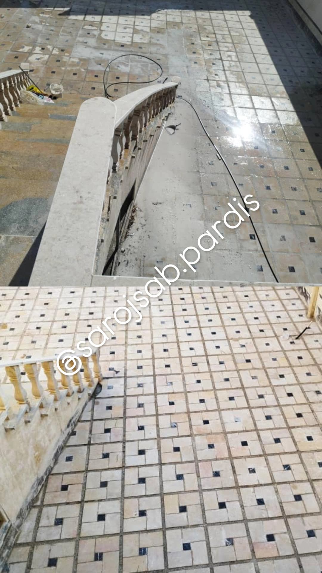 کفسابی و رفع جرم و ناخنک، رفع جرم و مصالح از سنگ کف پارکینگ و براق کردن سنگ در مهراباد، رودهن، دماوند